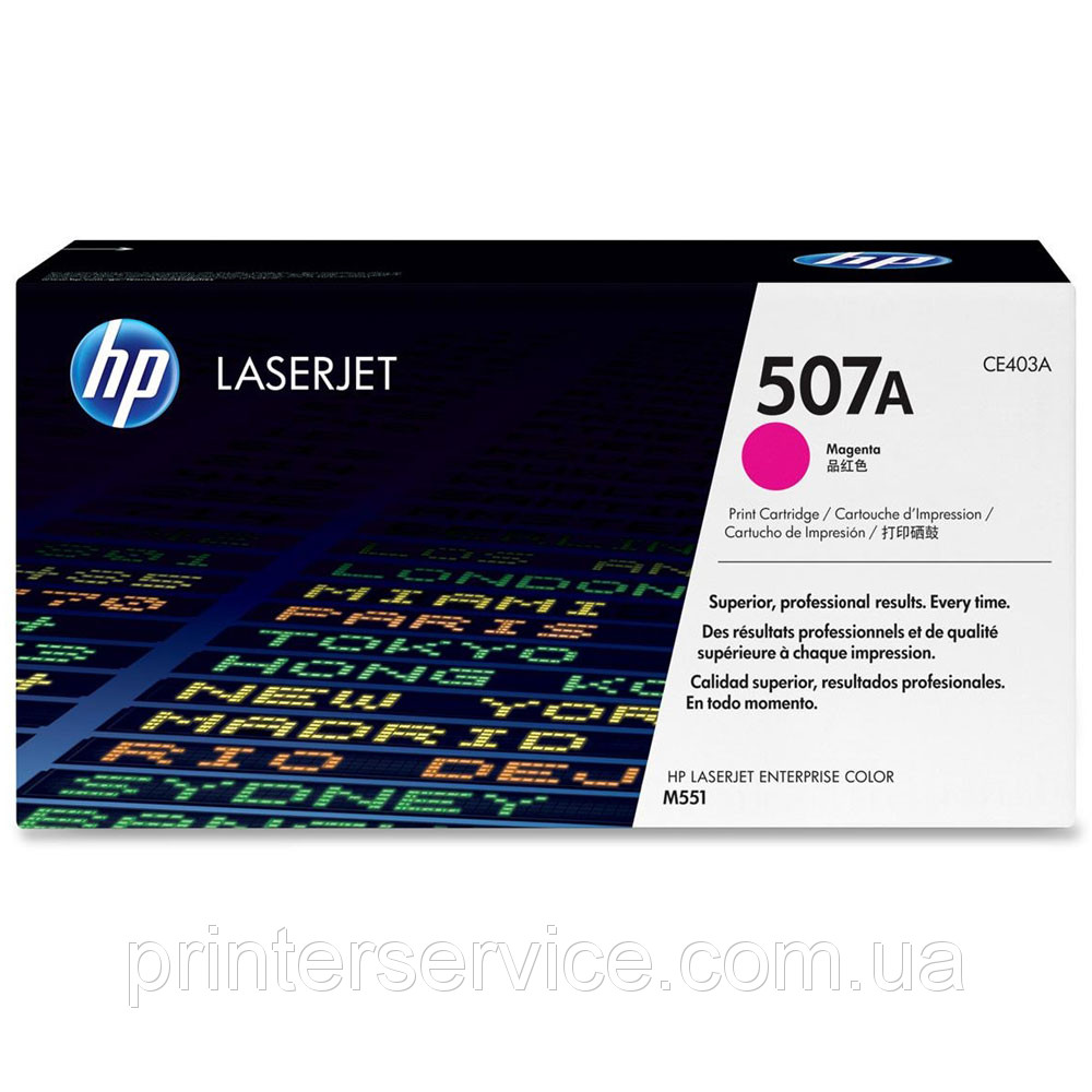 Оригінальний пурпурний картридж HP CE403A (507A). Лазерний картридж для кольорових принтерів HP LaserJet Enterprise 500 Color M551n, M551dn, M551xh . Ресурс друку 6000 сторінок.